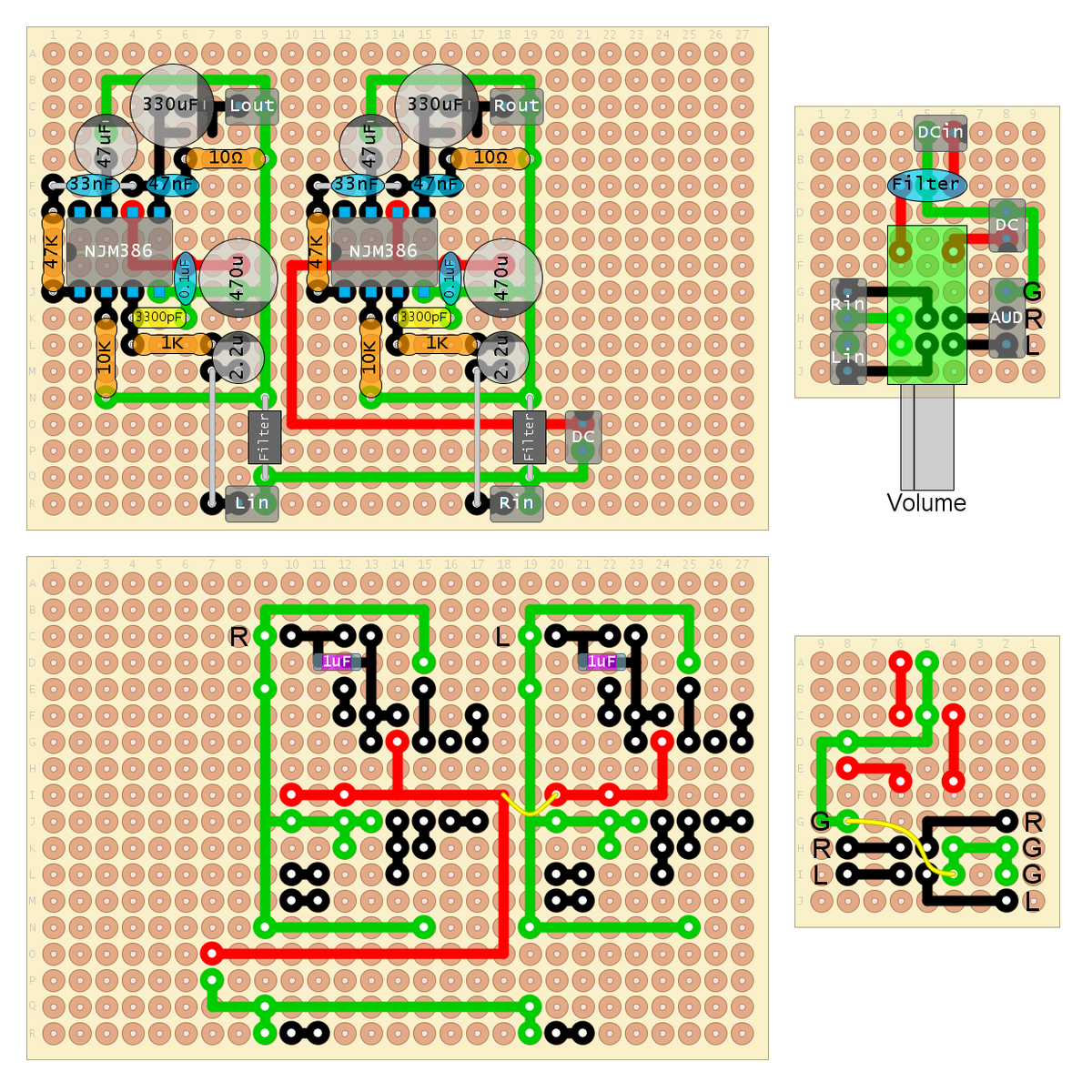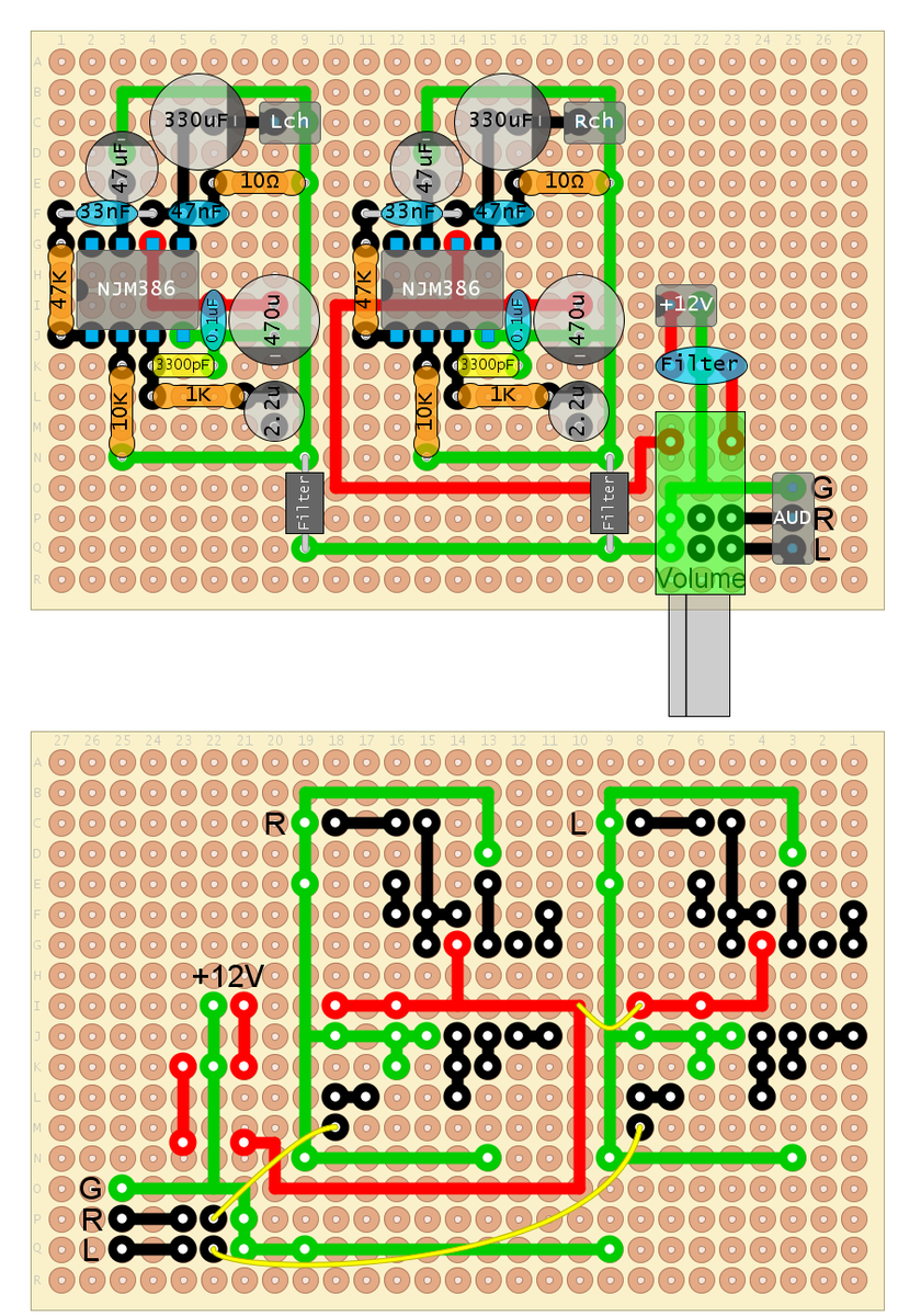 どこが中途半端かと言うと、電源とボリュームが回路的に完全一致しているのに、それぞれ作っている点。