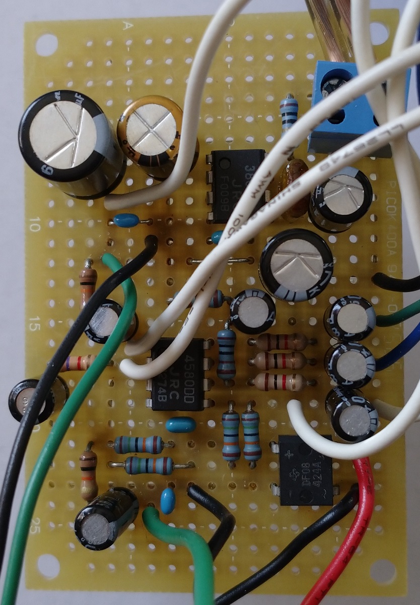 - LM386アンプはほぼデータシート通り。ゲインは20倍(+26dB)固定。