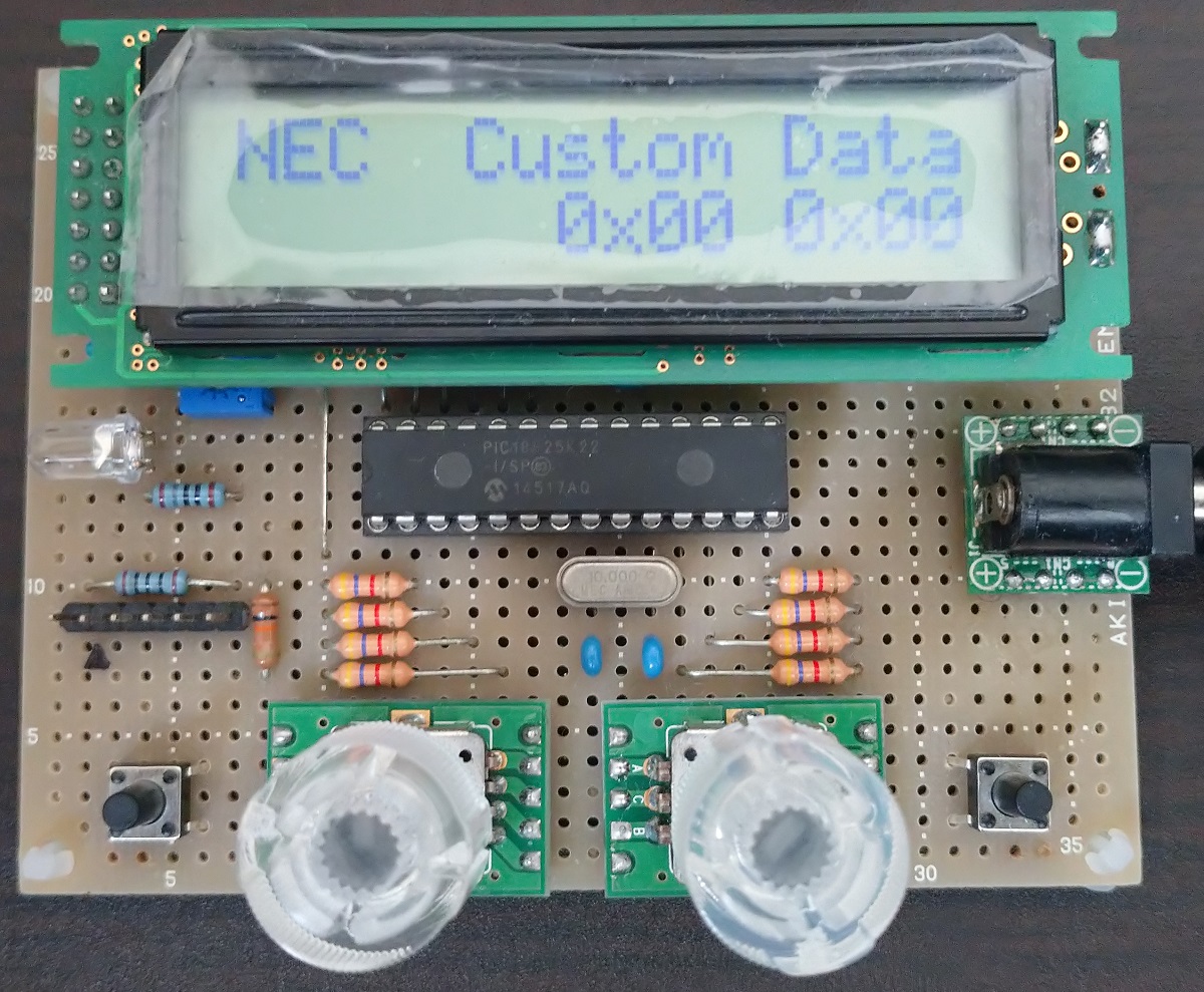 - IC1が本基板の心臓部であるPICマイコン。型番はPIC18F25K22だが、これは当時コスパ最強だったから選んだもので、現在は値上げや品薄の影響があるため、他のマイコンを使用してもいい。