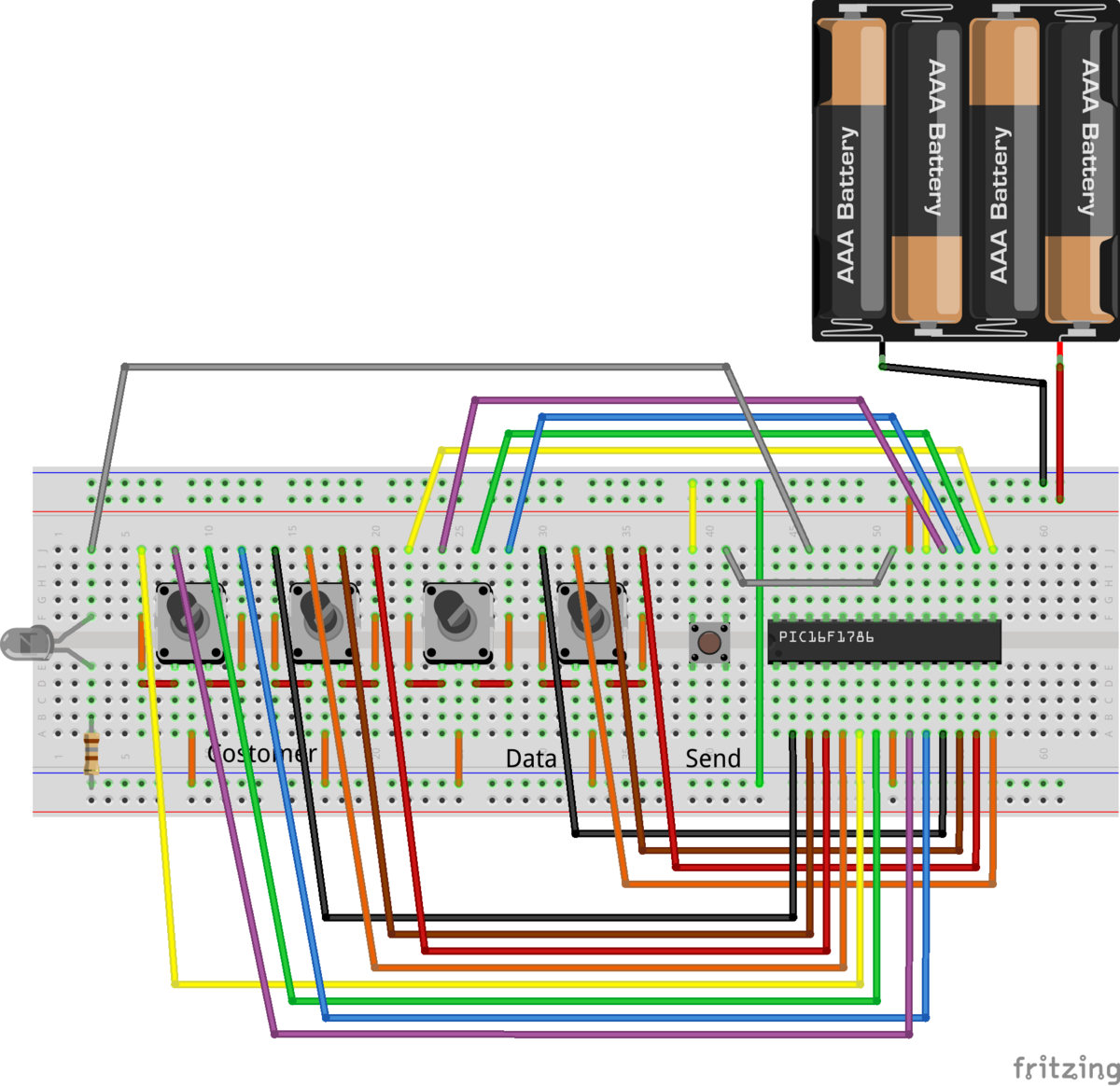 これをブレッドボードに組み込むと、以下のような配線図になる。